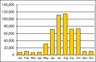 visitors by month - 2003