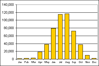 visitors by month - 2003